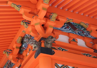 蟇股はその中に梵字で四天王の文字を彫っている。軒支輪の天女があでやかに彫られている。軒鼻に動物の彫刻