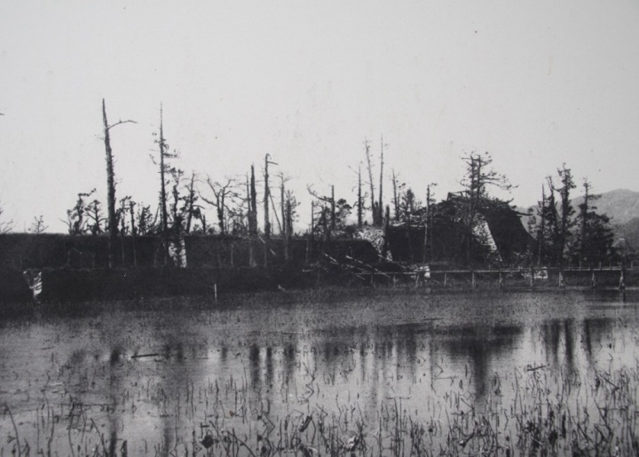 原爆投下広島城が被爆【被爆広島城】築城広島の歴史とともに歩んできた広島城天守。昭和20(1945)年8月6日の原爆で、天守は崩れ落ち石垣だけが残りました。被爆直後に撮影された写真には、がれきの山と化した天守の材木が写り、原爆のすさまじさを物語っています。[平和公園資料館]