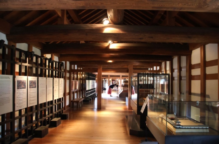 【多聞櫓】櫓は城を守るため欠かせない建物でした。平櫓が長くなったものが多聞櫓で、本来土塀あるところを長い櫓にすることで防御性を高める目的で造られました。中に、「広島城二の丸の仕掛け」等興味深い説明板、展示物があります。