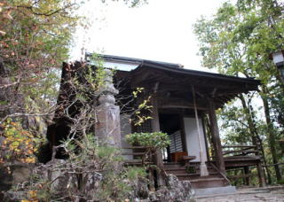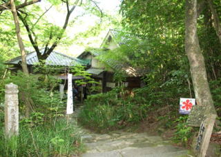 三滝の境内にあるお茶屋さん。もみじの林に埋もれるように建っています