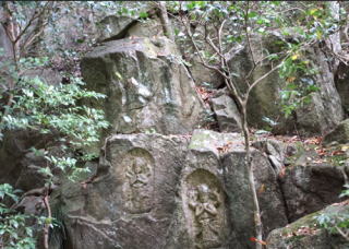 自然の懸崖(けいがい)または大石の表面を磨いて彫刻したもの