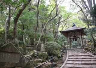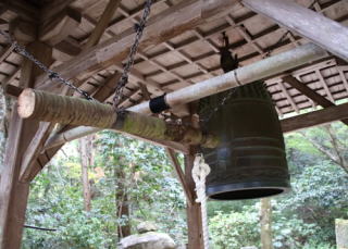 赤縄橋を通り石段を上がると鐘楼あり、静かにお祈りしながら鐘をひとつつく
